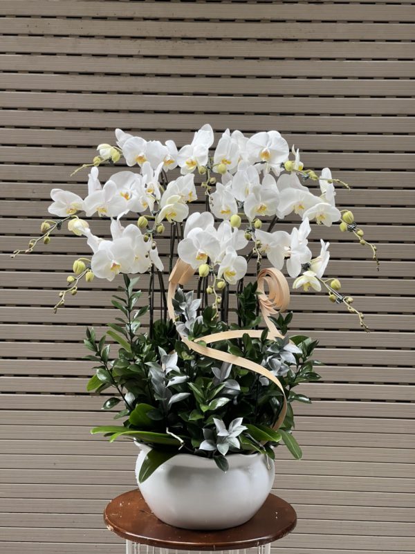 Chậu lan hồ điệp trắng- mong manh, màu trắng tinh khiết mang đến vẻ đẹp trong sáng, mong manh mà nhẹ nhàng quyến rũ. Hấp dẫn người nhìn bời vẻ đẹp khó cưỡng lại được. Bạn còn chần chừ gì nữa mà không tô điểm thêm không gian nhà bạn hay nơi bàn làm việc bằng chậu lan hồ điệp trắng này.